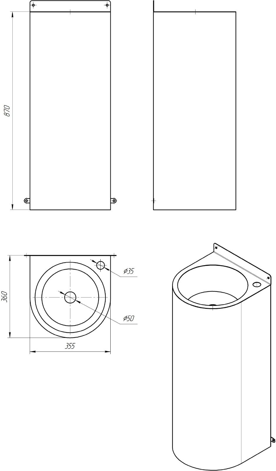 Фонтан выполнен из нержавеющей стали AISI 304, что делает его устойчивым к коррозии, механическим повреждениям и воздействию влаги. Его конструкция исключает острые углы и мелкие детали, обеспечивая безопасность пользователей, включая детей и пожилых людей.