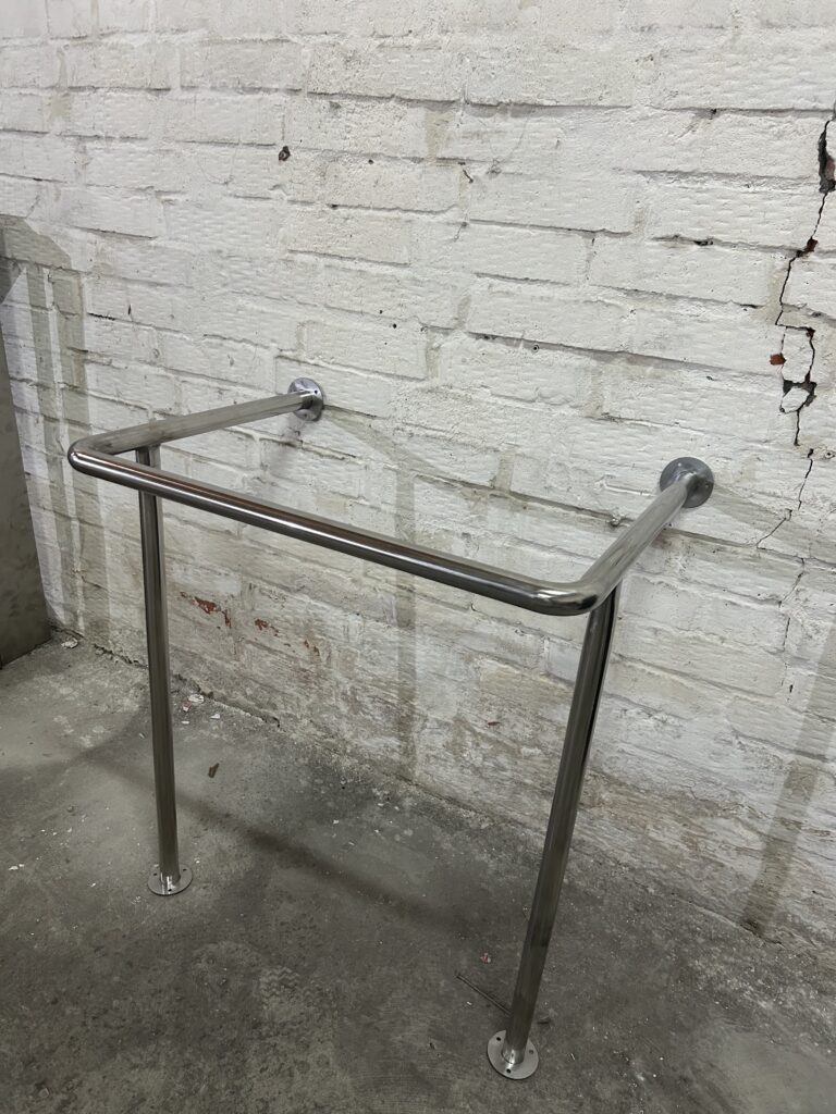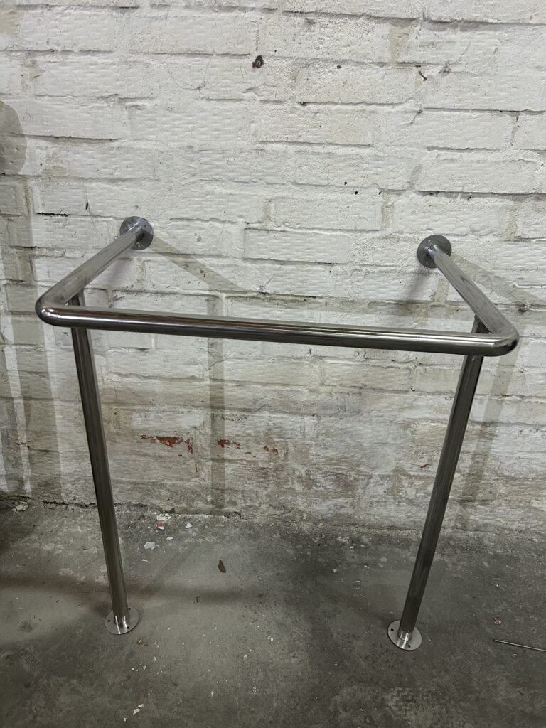 Для изготовления используется нержавеющая шлифованная труба, что вместе с четырьмя точками крепления к стене через фланцы обеспечивает: