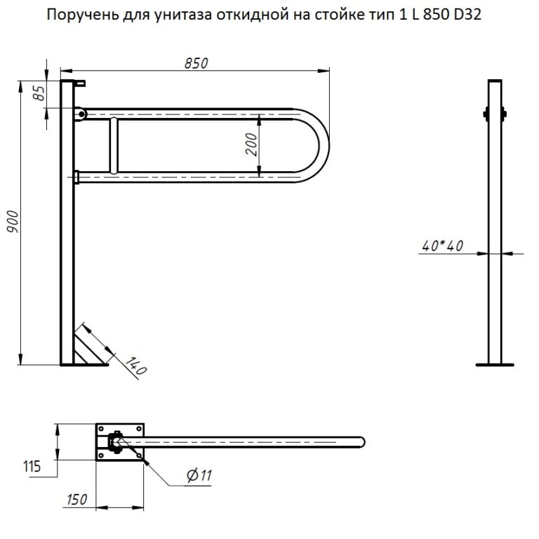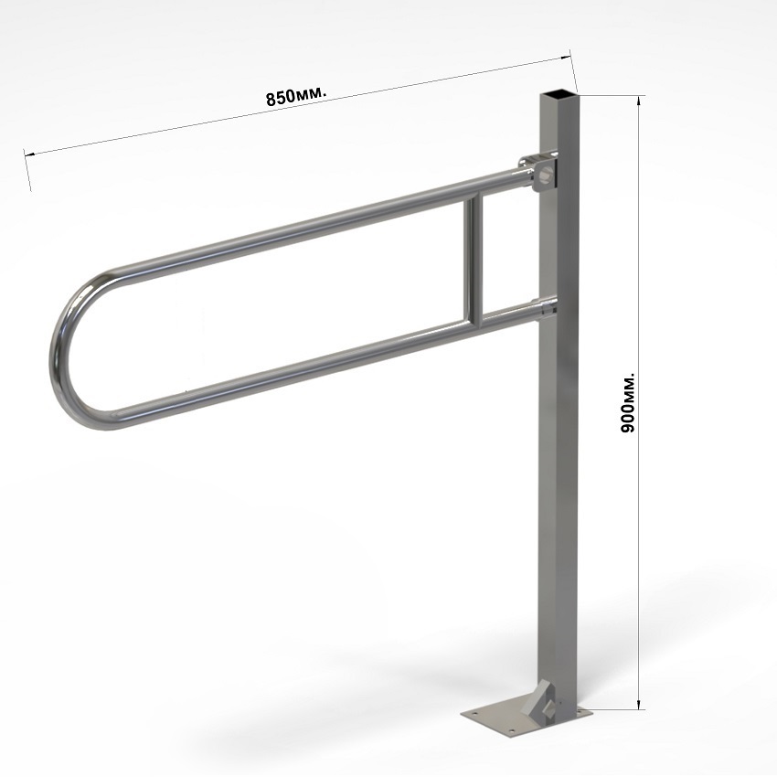 Откидной поручень для унитаза на стойке, тип 1, длина 850 мм (D32) — надёжная и безопасная опора для маломобильных граждан (МГН). Идеально подходит для установки в санитарных помещениях больниц, поликлиник, пансионатов, ТЦ и других объектов, где требуется соблюдение норм доступной среды