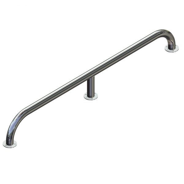 Пристенный L-образный поручень — это настенный поручень с горизонтальной и вертикальной наклонной частью. Он служит опорой для рук людям, имеющим ограничения по здоровью, а также детям.