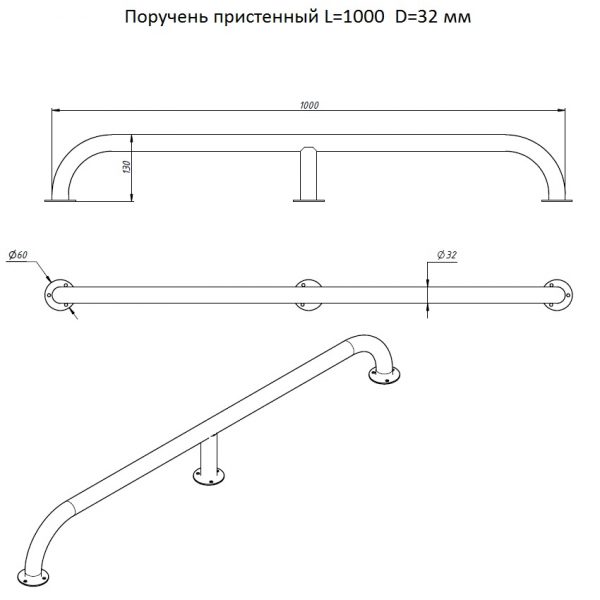 Поручень пристенный L=1200 D=32 мм