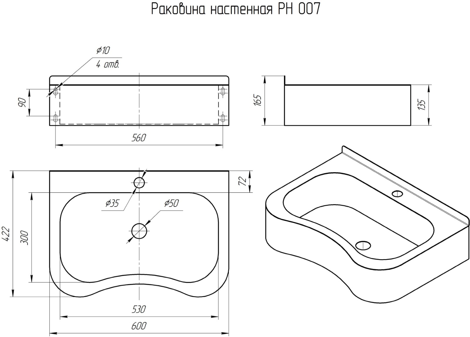 Закажите Антивандальную раковина прямоугольная Волна прямо сейчас — с доставкой по всей России и СНГ!