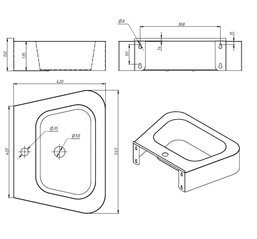Компактная и удобная раковина Трапеция из прочной нержавеющей стали — практичное решение для общественных и производственных помещений. Эргономичная форма и антивандальное исполнение гарантируют надёжность и долговечность.